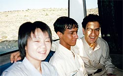 といったところだろう。 2人は髪も整え、カルバン・クラインのシャツでで決めている。それに、とてもはしゃいでいる。せっかくタイプした書類もまるめていすの脇に挟んで、バスに流れているアラブポップスに併せて踊ったり・・・・