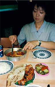 この晩の夕食はホテルで食べた。若きマネージャS君が用意してくてくれたのはマンサフと呼ばれる料理。チキンをヨーグルト(おそらく羊の)で煮て煮出した汁と一緒にご飯にかけて食べる。ご飯にはナッツなどのっている。最初は豪勢でおいしそうに見えたが、食べ始めると 「う〜む」。 ヨーグルトとご飯・チキンの組み合わせがちょっと・・・ さすがの妻も半分くらい残してしまった。 しかし、昨晩の料理に比べると手が込んでいる。 明日の大使館凱旋を一緒に祝うために作ってくれたのかもしれない。