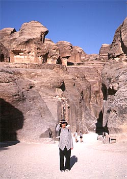 ペトラへの道はシクと呼ばれる岩の裂け目が唯一あるのみ。 高さ100mくらいの岩に挟まれた細い道が約1km続く。 その先にエル・ハズネ(宝物殿)と呼ばれる岩窟がある。